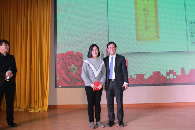 特等獎(jiǎng)得主與董事長(zhǎng)合影,主持人在一旁流露出羨慕的眼光