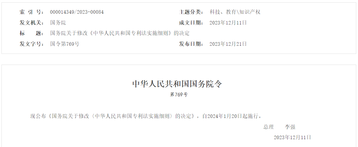 隨著我國知識產權保護的不斷發展,相應的法制建設也不斷取得成果。2024年1月20日起,新修訂的《中華人民共和國專利法實施細則》將施行。