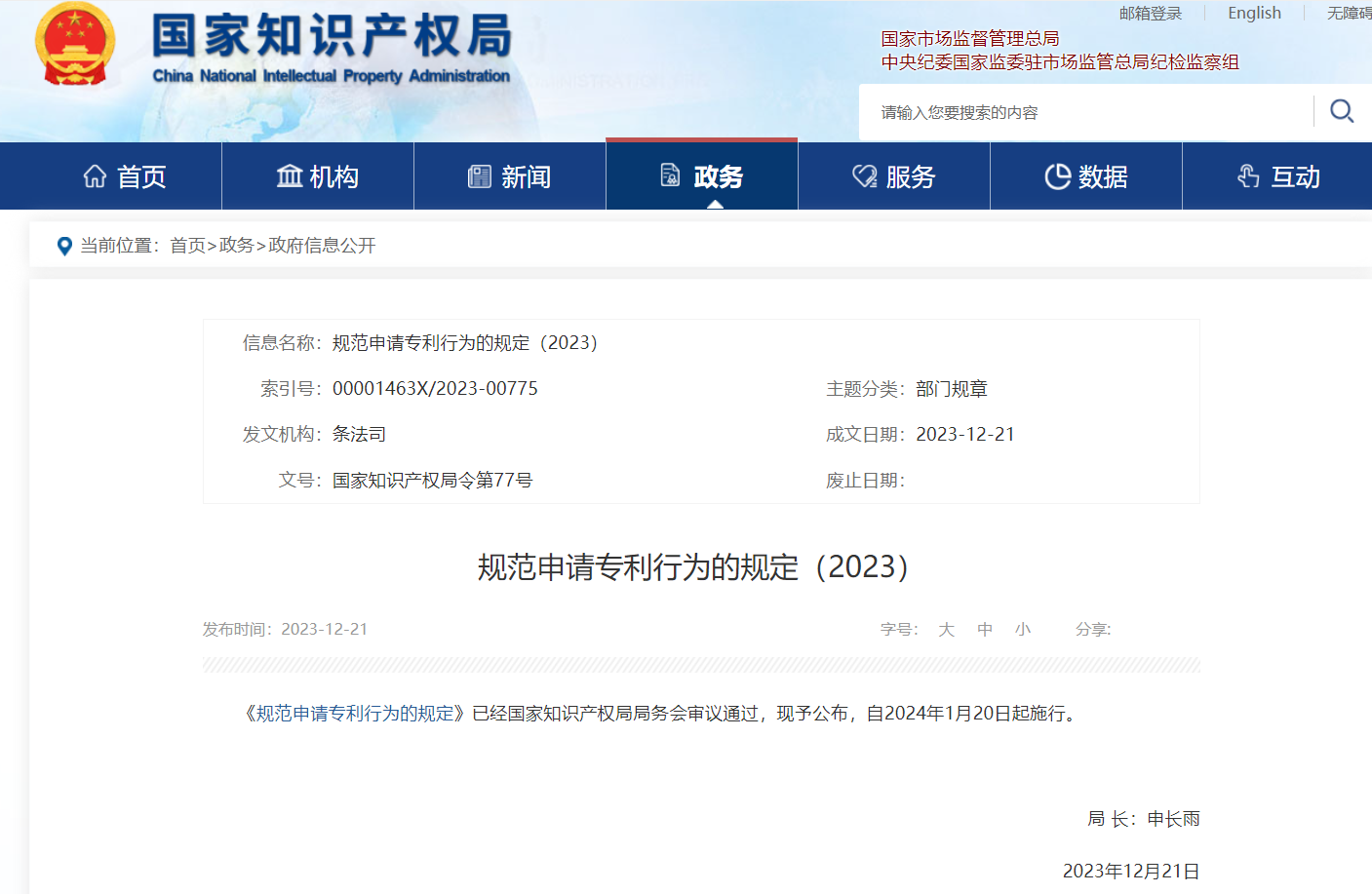 此外,《規范申請專利行為的規定(2023)》也將在2024年1月20日起施行,以維護專利工作的正常秩序。