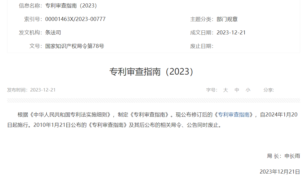 新修訂的《專利審查指南》(2023版)的具體文本可在在下面鏈接獲得。